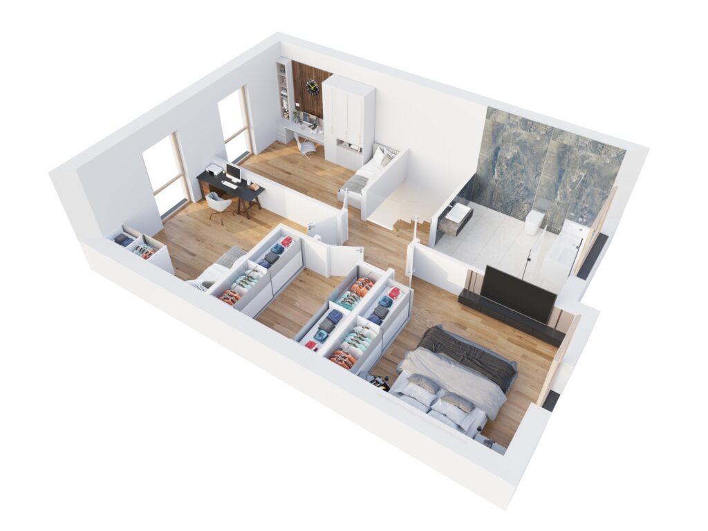 Przedstawione wizualizacje mają charakter poglądowy i stanowią wyłącznie materiał pomocniczy ułatwiający przyszłym nabywcom mieszkań zorientowanie się w ogólnym wyglądzie realizowanego Przedsięwzięcia Deweloperskiego. Przedstawione wizualizacje nie stanowią oferty w rozumieniu ustawy z dnia 23 kwietnia 1964 r. Kodeks cywilny (Dz. U. z 2014 r., poz. 121; ze zm.)